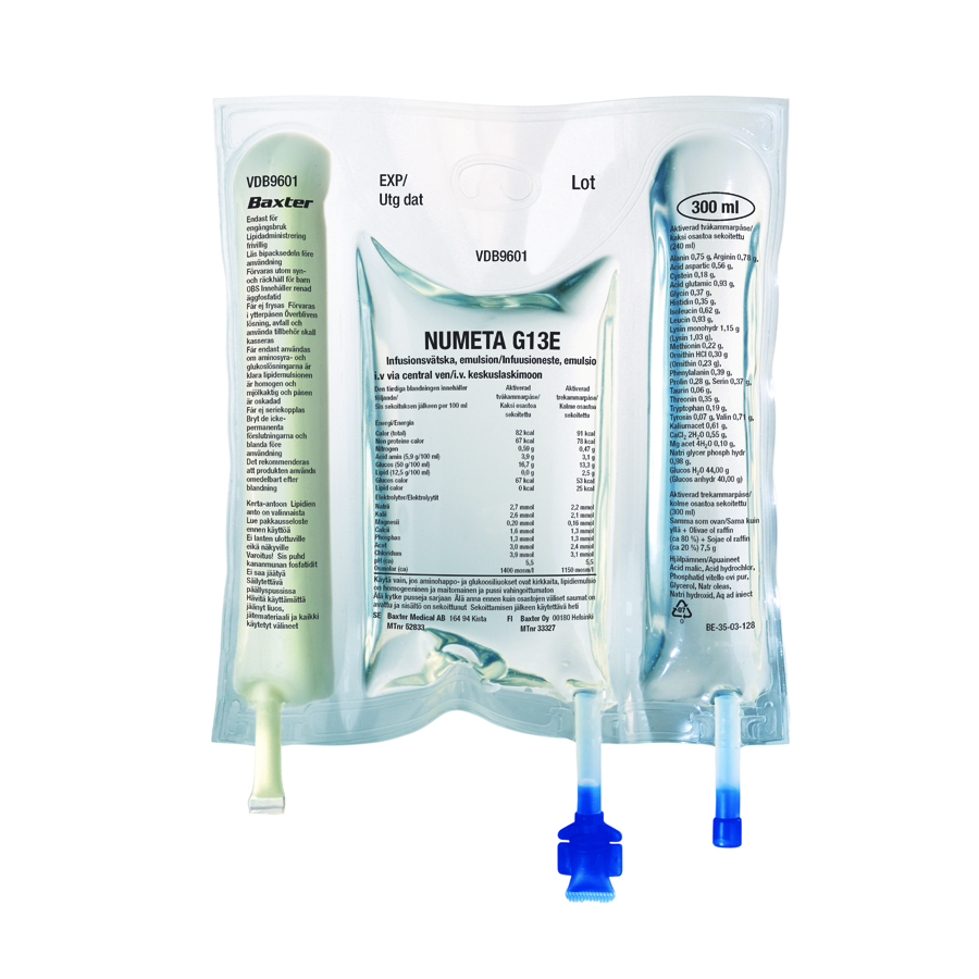 Numeta G13E är indicerat för parenteral nutrition till för tidigt födda spädbarn när oral eller enteral nutrition är omöjlig, otillräcklig eller kontraindicerad.