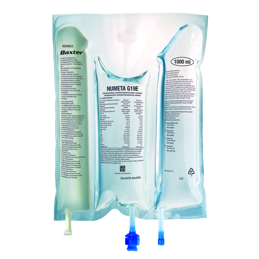 Numeta G19E är indicerat för parenteral nutrition till barn över 2 år och ungdomar 16-18 år när oral eller enteral nutrition är omöjlig, otillräcklig eller kontraindicerad.